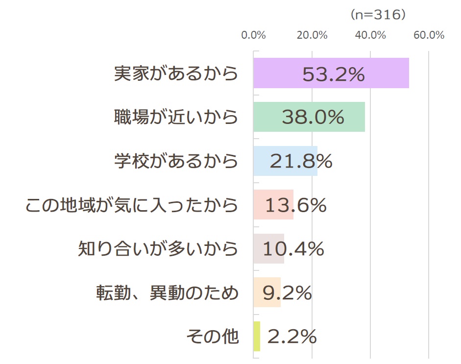 義理の実家の近くだから/結婚/住宅を購入した/前の職場が近かった/地元に帰って来た/ライブイベントや食べ歩きが好きなので/親が住んでる場所だったから