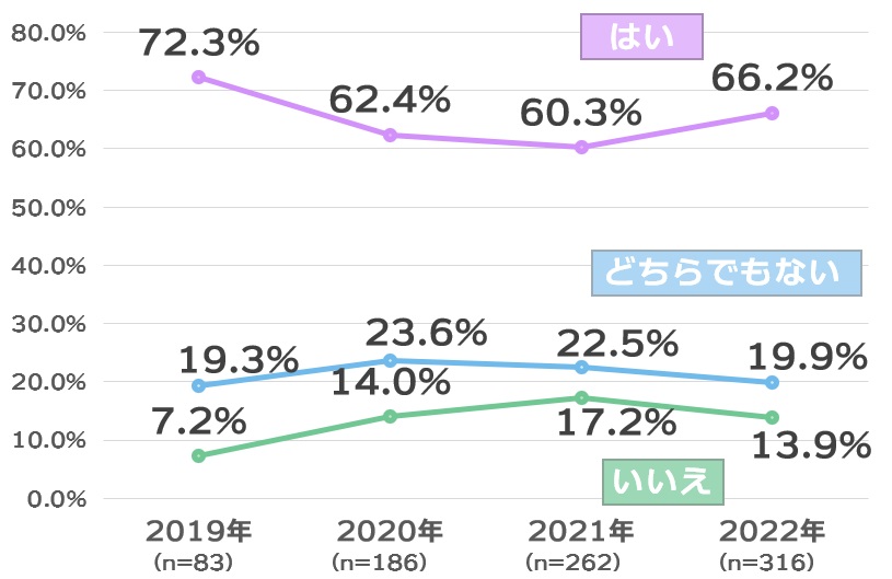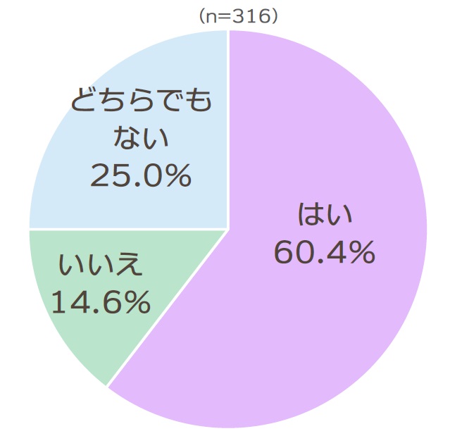 問3の「将来(今後も)山形に住みたいですか」という設問では、「はい」(60.4%)が最も高く、「いいえ」は14.6%に留まりました。また、山形県内在住者と山形県外在住者別にみると、現在山形県外に住んでいても「はい(山形に住みたい)」と回答した人は53.3%にのぼりました。