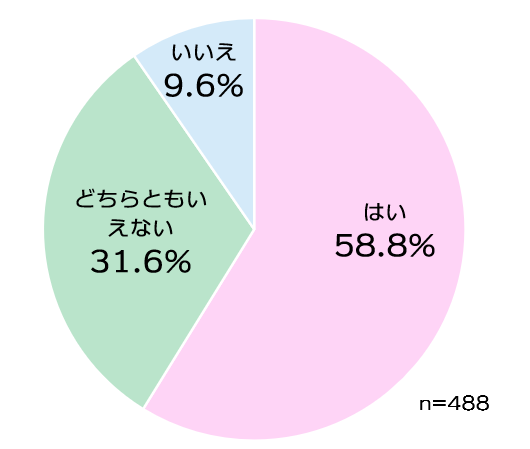 問5では「今後も山形に住みたいか」をたずね、「はい」(58.8%)が過半数を占めました。「いいえ」は9.6%となり、県外へ移住する希望がある人は10人に1人の割合という結果になりました。