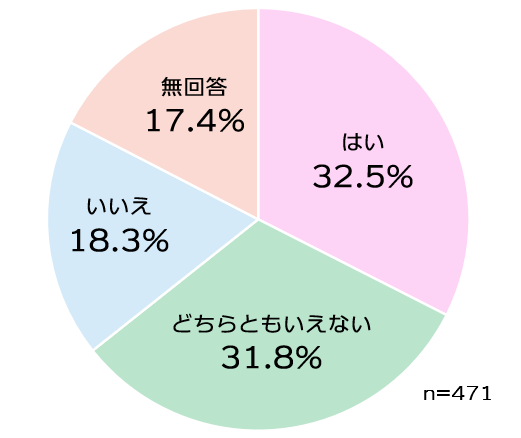 問6-2では「県外へでかけることに不便さを感じるか」をたずねたところ、「はい」(32.5%)が最も高く、「どちらともいえない」(31.8%)も同程度の割合となりました。さらに問6-2-1ではその内容について記述式でたずね、「交通の利便性」(30.0%)と「交通手段の少なさ」(23.8%)を合わせて、交通手段に関する回答が過半数を占めました。