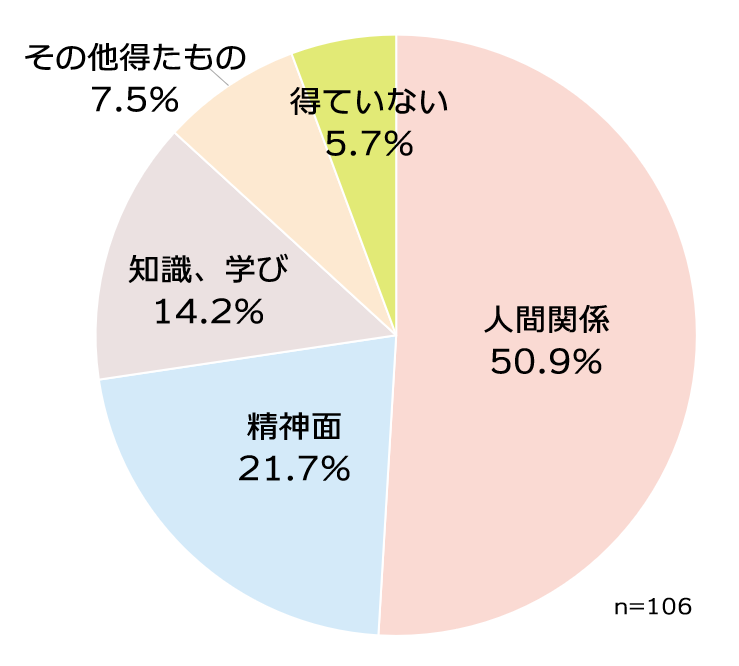 問9-3問9で「はい」と回答した方にお聞きします。その活動をして、あなたが得られたものは何だと思いますか?(記述回答)