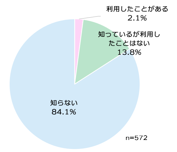問11では、「若者サポーター」を知っているかをたずねました。回答では「知らない」(84.1%)が最も高く、次いで「知っているが利用したことはない」(13.8%)となりました。