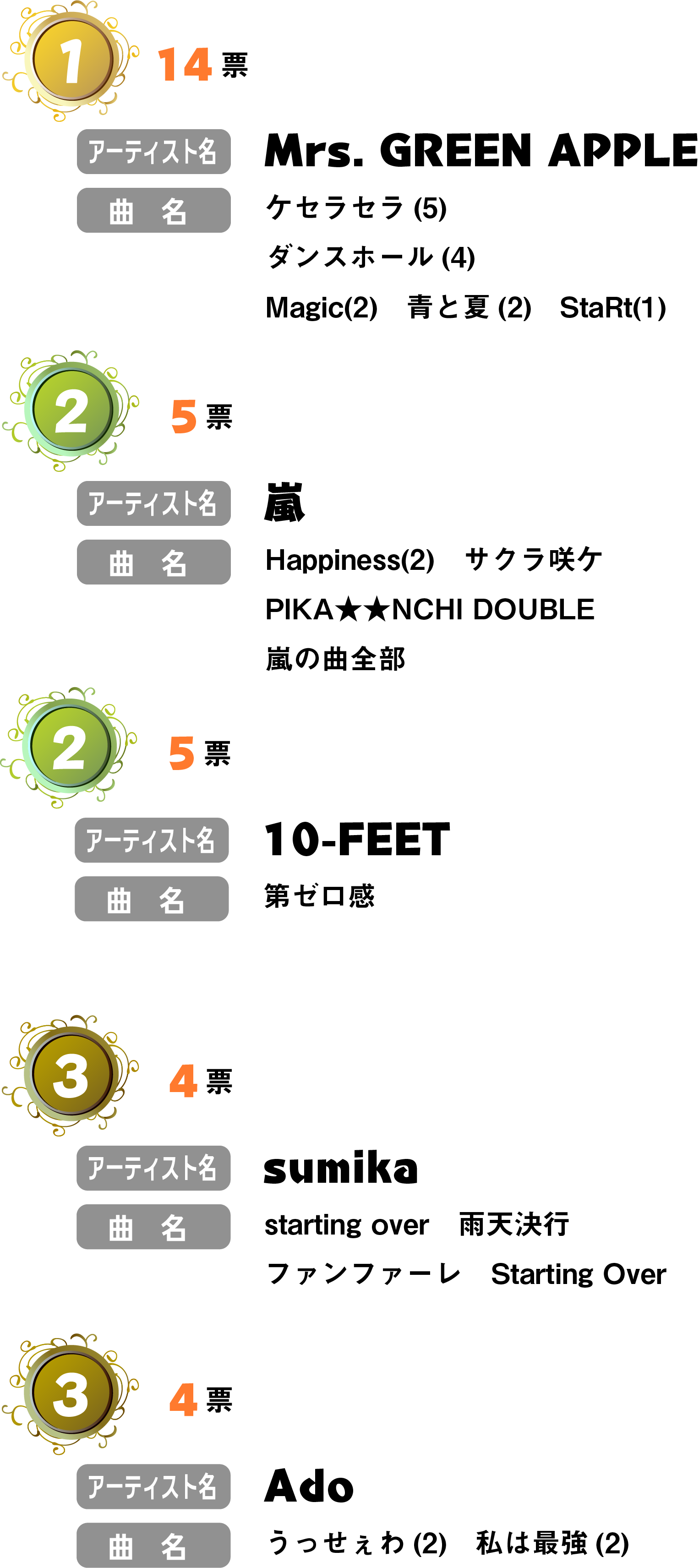 | 6 | 122 | アーティスト名なし | 1 | 春の歌 | |