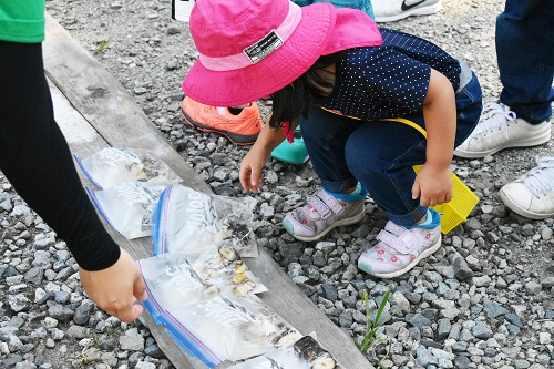 街中では出会えない虫たちと出会うために、ちょっとした罠を仕掛けます。一日目に設置した罠は、二日目にしっかり回収。作り方や設置方法も、やまがた基地つくりのお二人がレクチャーしてくれるので、安心です。