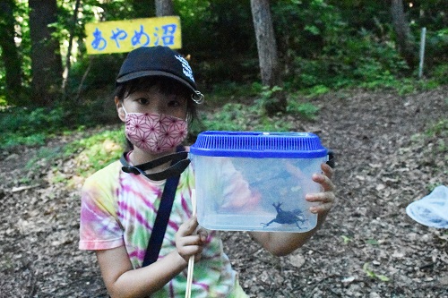 日中にも関わらず、捕まえたカブトムシやクワガタを子どもたちは嬉しそうに虫かごに入れていました。中には6匹もクワガタを捕まえた子もいて、やまがた基地つくりのさやぽんは「今年はクワガタが多いみたい。夕方なのにこんなに捕まえられると思わなかった」と意外そうに笑っていました。