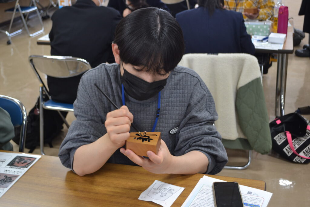第2部は地域文化体験活動として、青年の家がある天童市の伝統的工芸品である「将棋の駒」の書き駒体験!