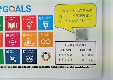 右下に最寄りの天童駅の時刻表が…イベント終わりであろう電車の時間が載っていますね。