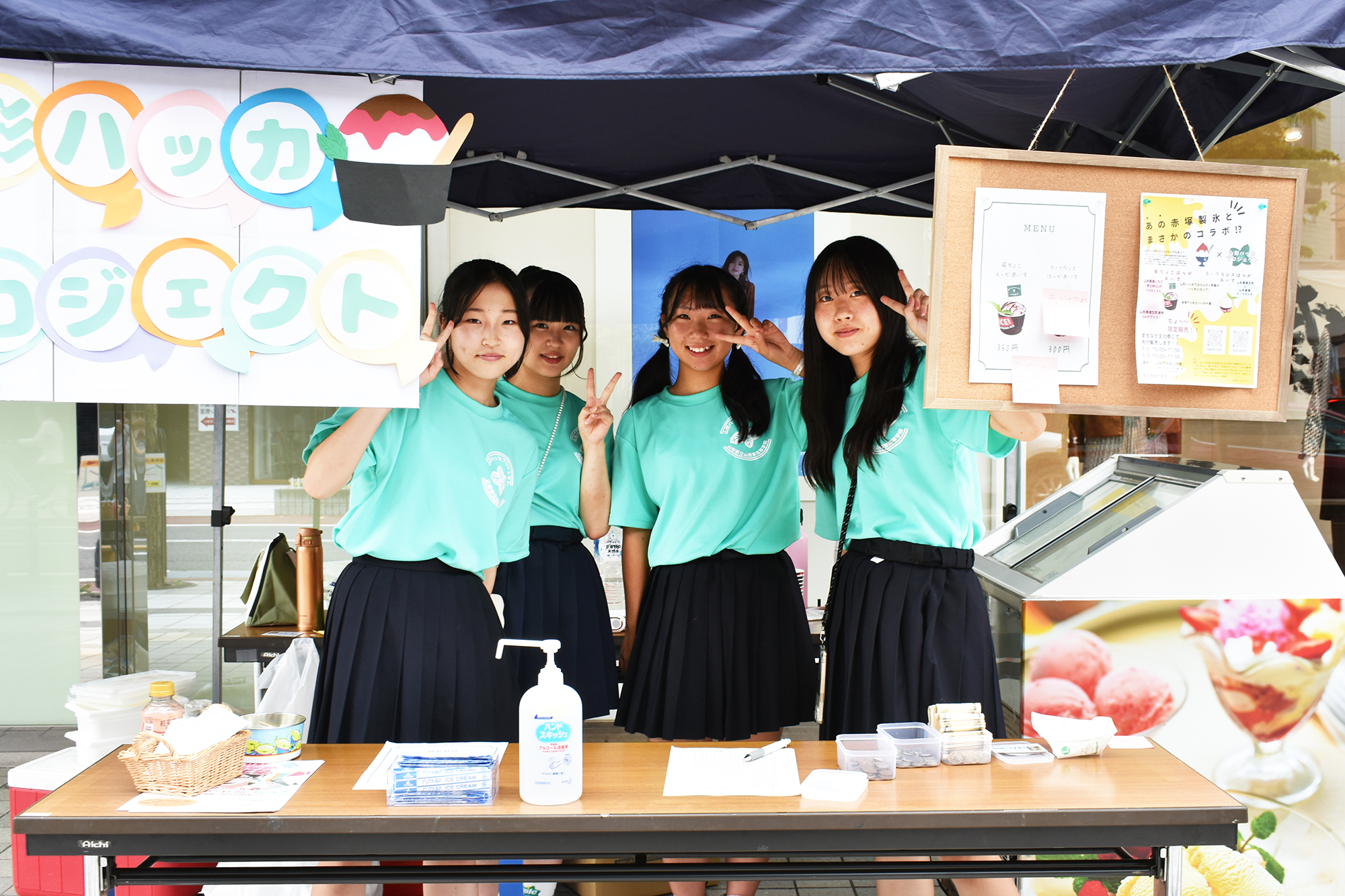 AZ七日町の入り口付近では、「山形ハッカプロジェクト」がハッカを使ったアイスクリームを提供していました。こちらも探求学習のチームだそう。