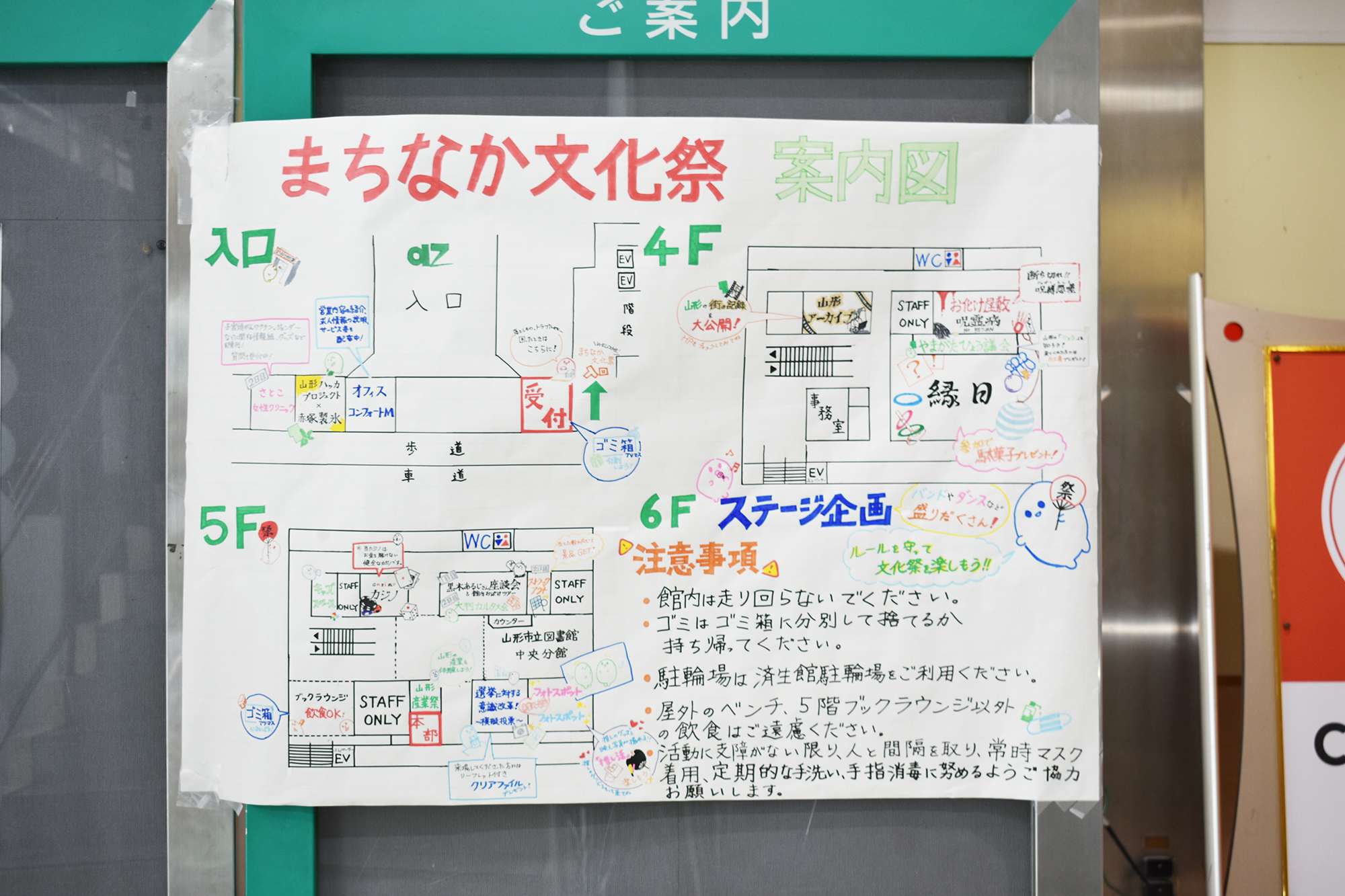「山形まちなか文化祭」では、実行委員会のほかに、広報物のデザインや当日の準備、装飾、ブース運営などを手伝ってくれるスタッフが100名以上集まりました。