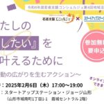 令和7年2月6日(木)17時から、スタートアップステーション・ジョージ山形(共催)にて、今年度最後となる第4回地域活動交流会「わたしの『したい』を叶えるために ~活動の広がりを生むアクション~」を開催しました。