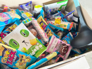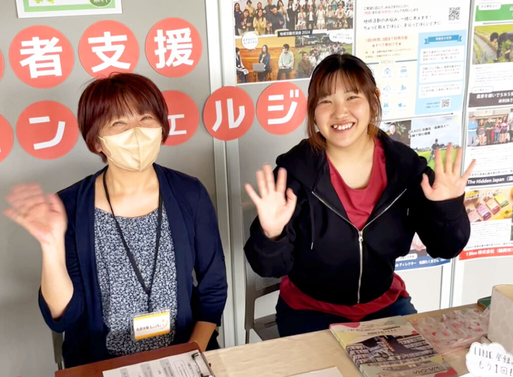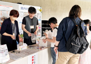 私たちのブースでは、冊子WA-CHAの配布と、県内の地域活動をする若者の紹介記事の展示、記事にちなんだクイズを行いました。クイズの正解者は「お菓子すくい」に挑戦。おたまでどれだけお菓子をすくえるかというミニゲームです。