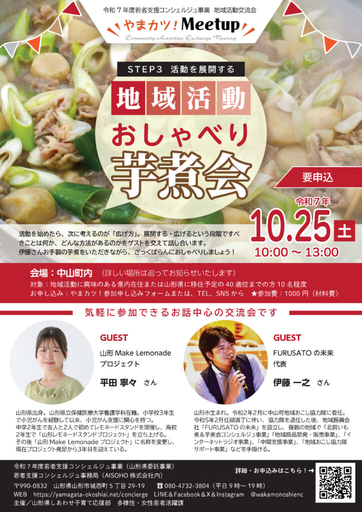 対象者:地域活動に興味のある県内在住または山形県に移住予定の40歳位までの方