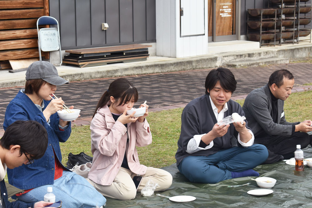 後半は伊藤さんお手製の芋煮と、みんなで作ったおにぎりをいただきながら、自由に交流しました。