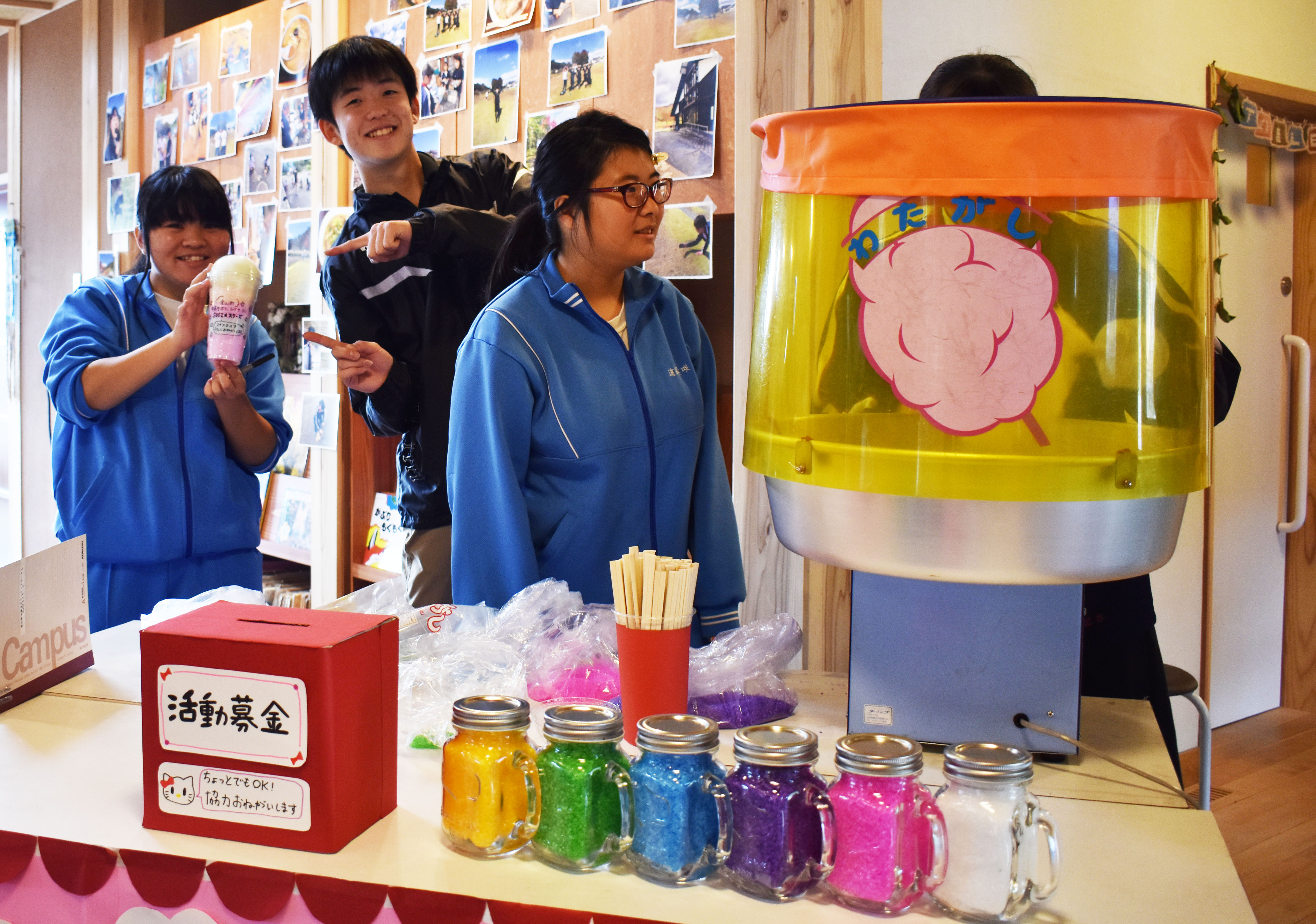 その向かえではSUGI☆スターズの高校生の皆さんが、わたあめを作っていました。