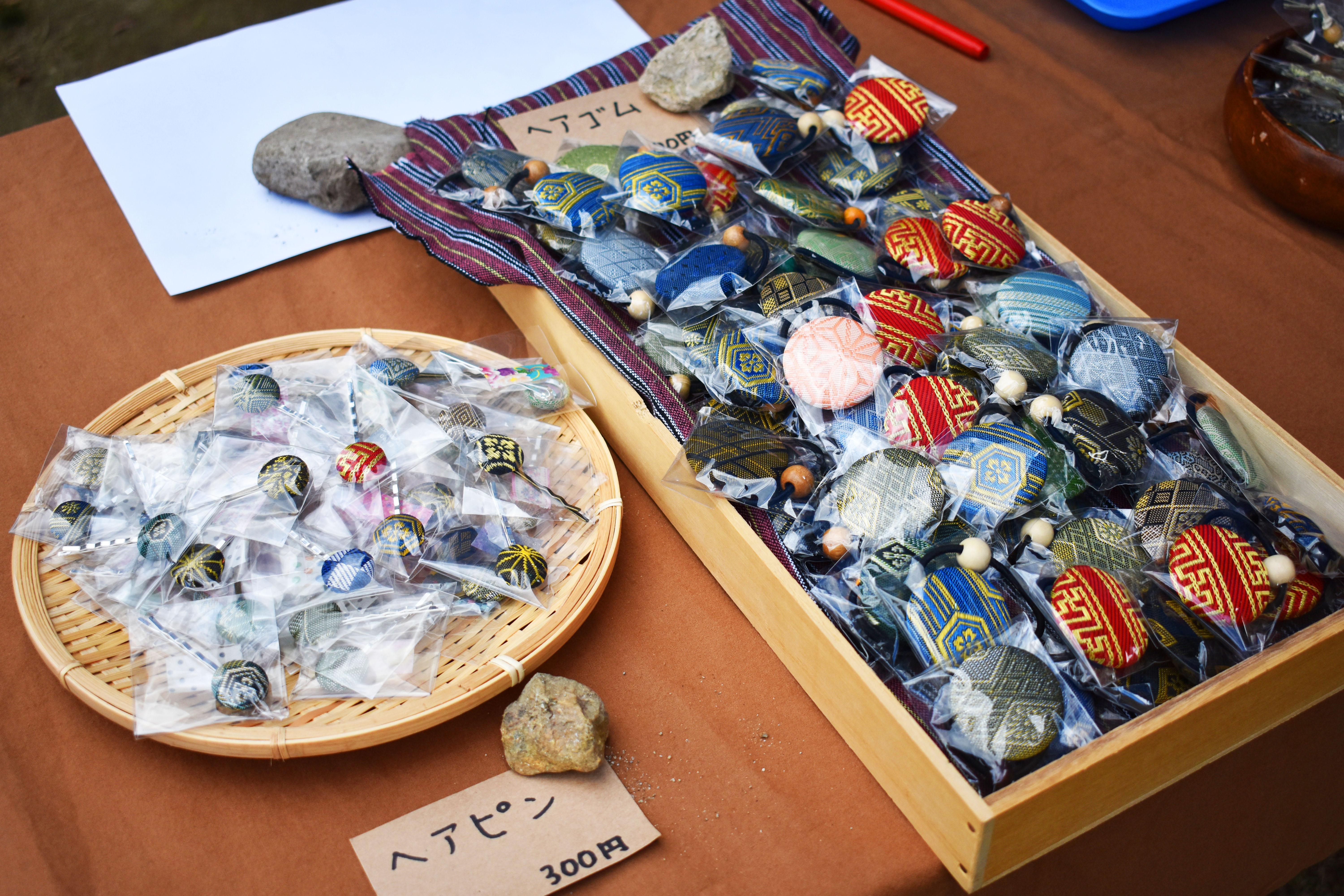 これは畳の端の部分を使って作ったヘアゴムとヘアピンだそうです。