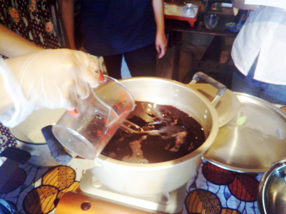 最終工程、酢を入れることで 鮮やかなワイン色になるんだそうです。