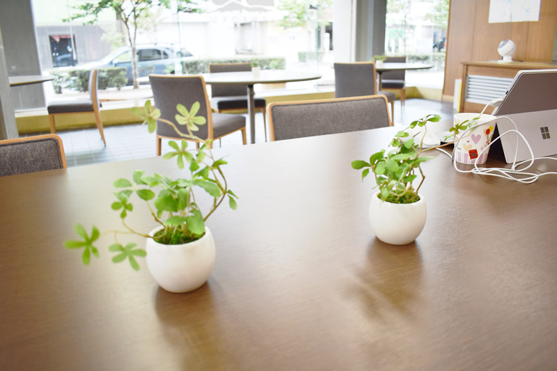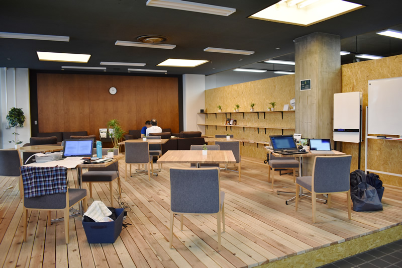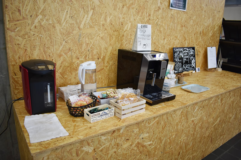 ここはコワーキングスペースになっていて、午前9時から午後9時まで、誰でも自由に使えるそう。さらにドリンクコーナーもあり、利用者は自由にコーヒーやお菓子をいただくことができます。もちろん打ち合わせも可能!