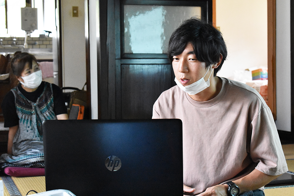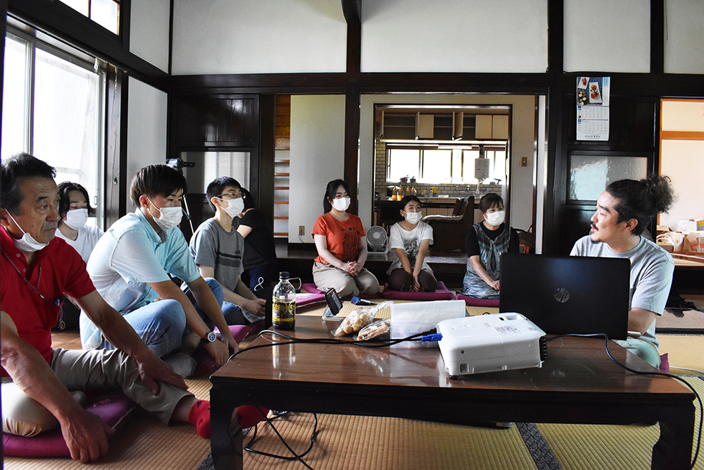 改修予定の古民家に学生や地域の方々が集まって、オンライン参加も含めて約20名でのミーティングです。