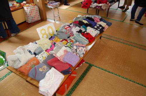参加費は、一家族100円です。入口受付でお支払いし、あとは子ども服を選んだり、テーブルがあるので休憩したり、親同士のおしゃべりも楽しめます。ちょっとしたつぶやきや情報交換などができ、ほっと一息つける場所になっているのがいいですね。