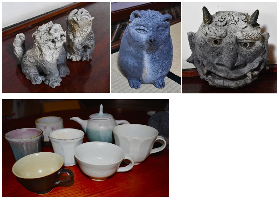 清水さんの作品は、迫力あるシーサーから色鮮やかな器まで、さまざまです。