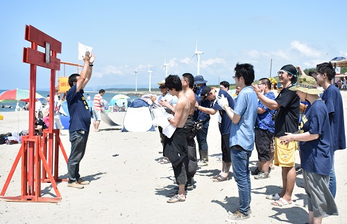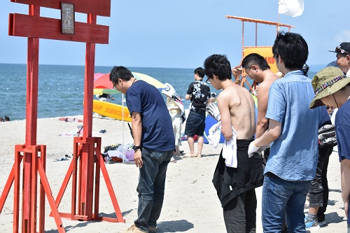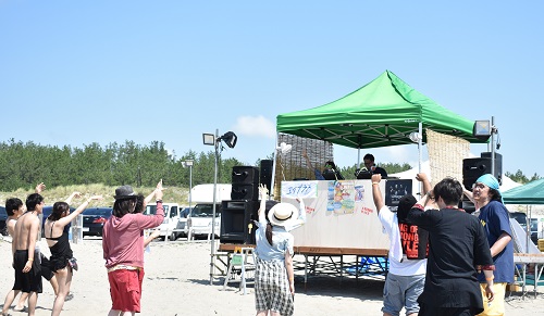 酒田宮海海水浴場は快晴。気持ちいい海風が吹く中