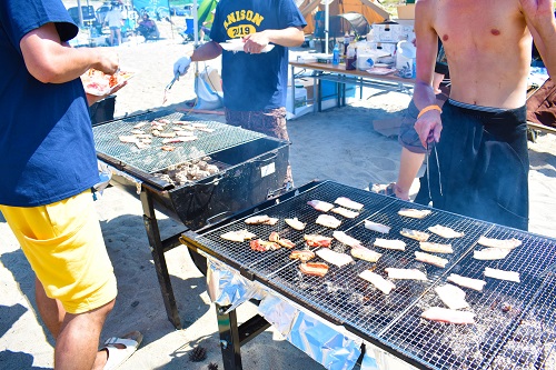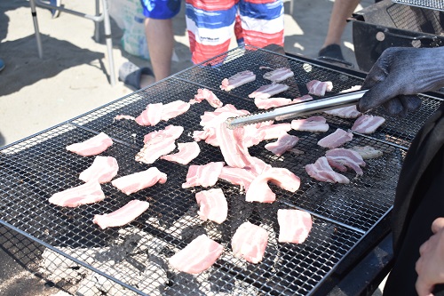 焼肉係のお兄さんは背中を真っ赤にしながらおいしいお肉を焼いていました。