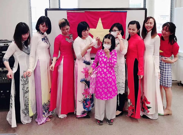 「アオザイというベトナムの民族衣装なんです。スタッフの方が、みんなで着ようって。」