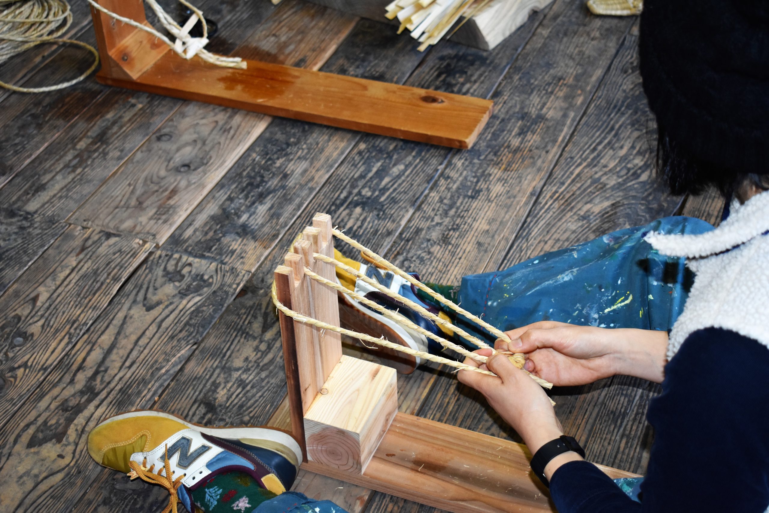 綯(な)う作業のコツを掴むまで、悪戦苦闘!