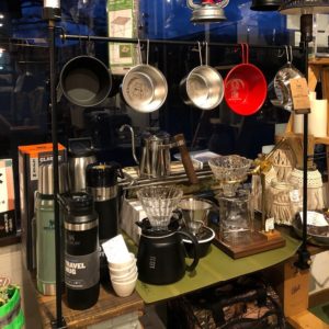 店内に入ると、ところ狭しと並んだキャンプ用品の数々。