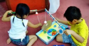 子ども食堂の会場となっている「農村環境改善センター」は室内なので、天気や気温の心配をする必要もありません。雪国にとっては大事なポイントです。食事の前には、トランポリン、輪投げ、ブロック、的当てゲーム、魚釣りゲームなどなど、幼児から小学生まで、広いホールでのびのびと自由に遊ぶことができます。