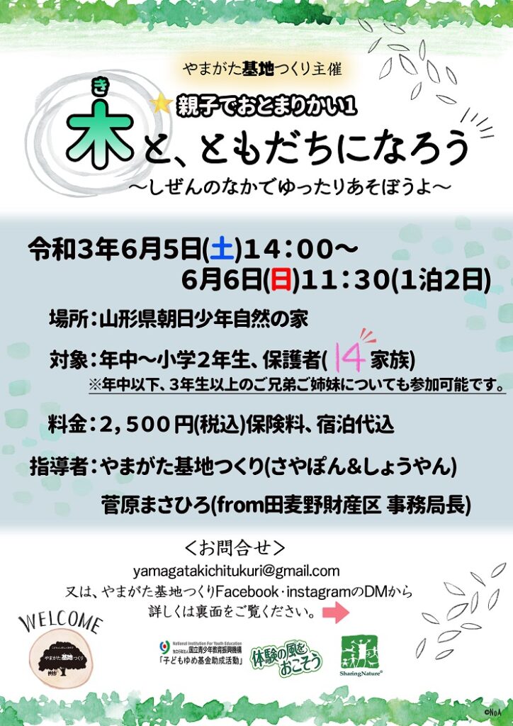 添付ファイル | R3.6.5親子でお泊まり会1 木とともだちになろう実施要項 |