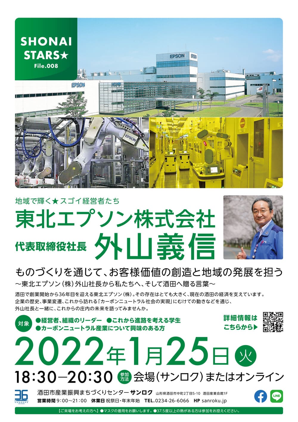 企業の歴史、事業変遷、これから訪れる「カーボンニュートラル社会の実現」にむけての動きなどを通じ、外山社長と一緒に、これからの庄内の未来を語ってみませんか?