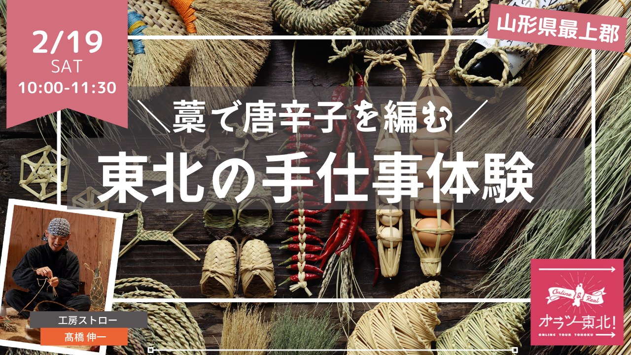 本ツアーでは、昔から地域に受け継がれている技術や、藁細工に込めた想いを次世代に残すため、山形県最上郡に「工房ストロー」を起ち上げた髙橋さんにお話を伺います。