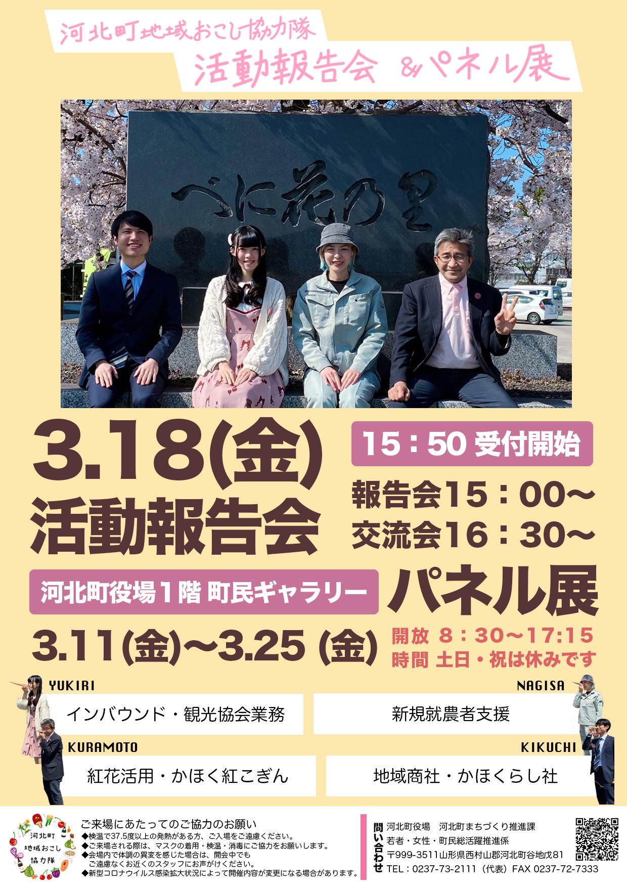 各隊員の活動報告と活動パネル展を開催しますので、皆様お誘いあわせのうえ足をお運びください。