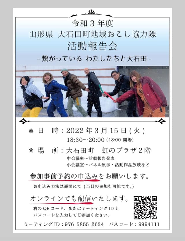 令和3年度 山形県 大石田町地域おこし協力隊活動報告会をします!