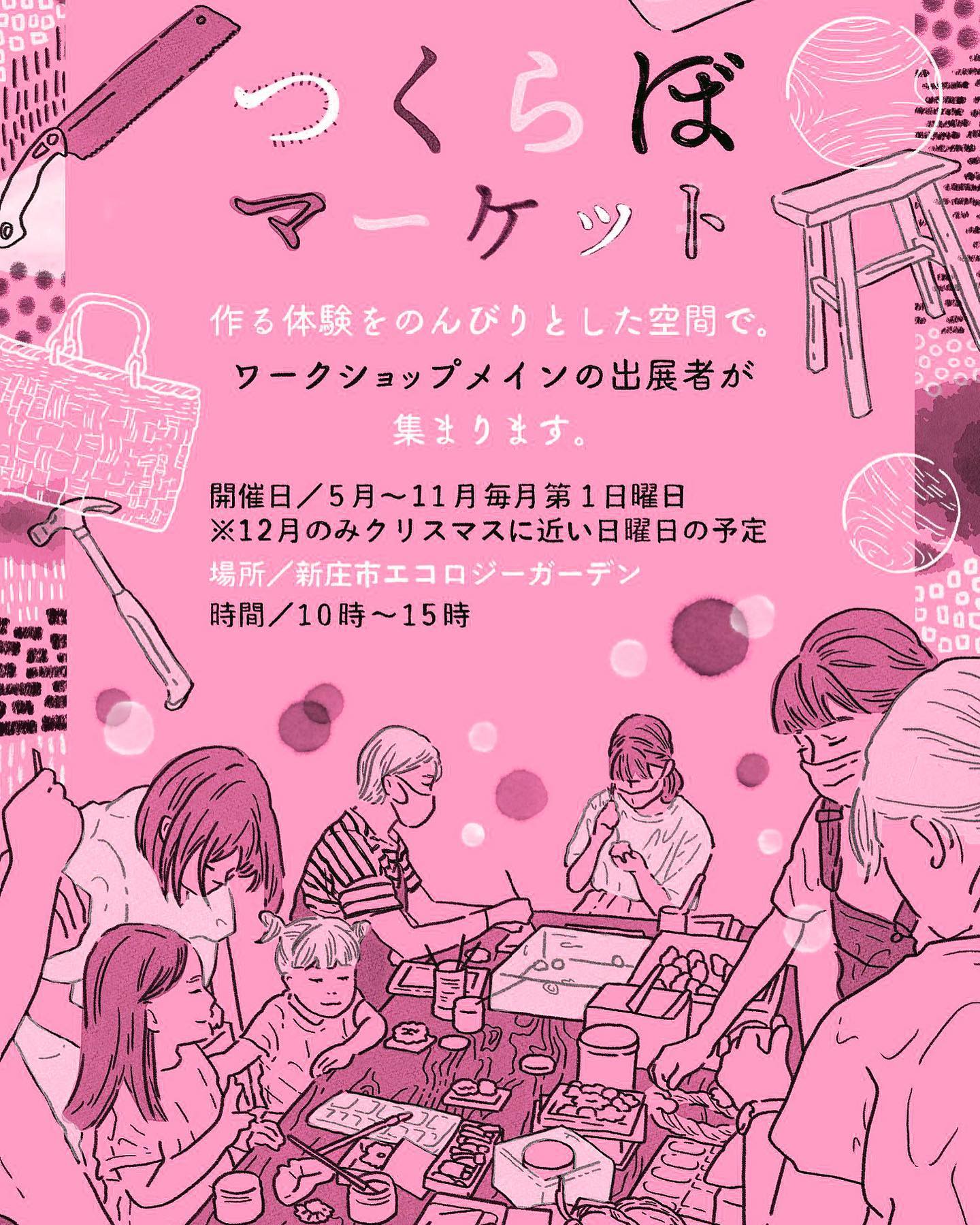 終了予定日: 2022年 12月 18日 つくらぼマーケット 会場:新庄市エコロジーガーデン (山形県新庄市十日町6000−1) エコロジーガーデンでワークショップや体験を中心としたマルシェ&キッチンカー <開催予定日> 毎月第1日曜日開催 (12月のみ第3日曜日 クリスマスマーケット) 5/1(日) 6/5(日) 7/3(日) 8/7(日) 9/4(日) 10/2(日) 11/6(日) 12月クリスマス前に開催予定 関連URL https://kito-kito.tumblr.com/ 記事番号:14586