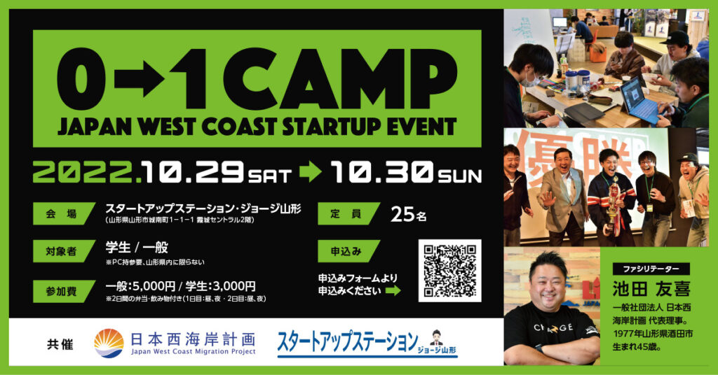 かねてより日本西海岸計画の池田さんと準備を進めてきた「0→1 CAMP」を開催します!