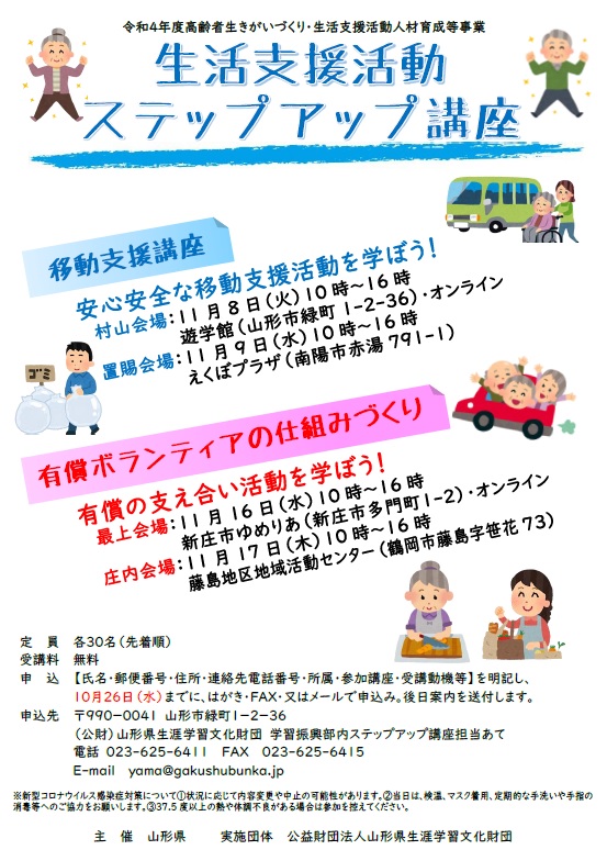 連絡先 | 山形県生涯学習センター Tel:023(625)6411 Fax:023(625)6415 メール:yama@gakushubunka.jp |