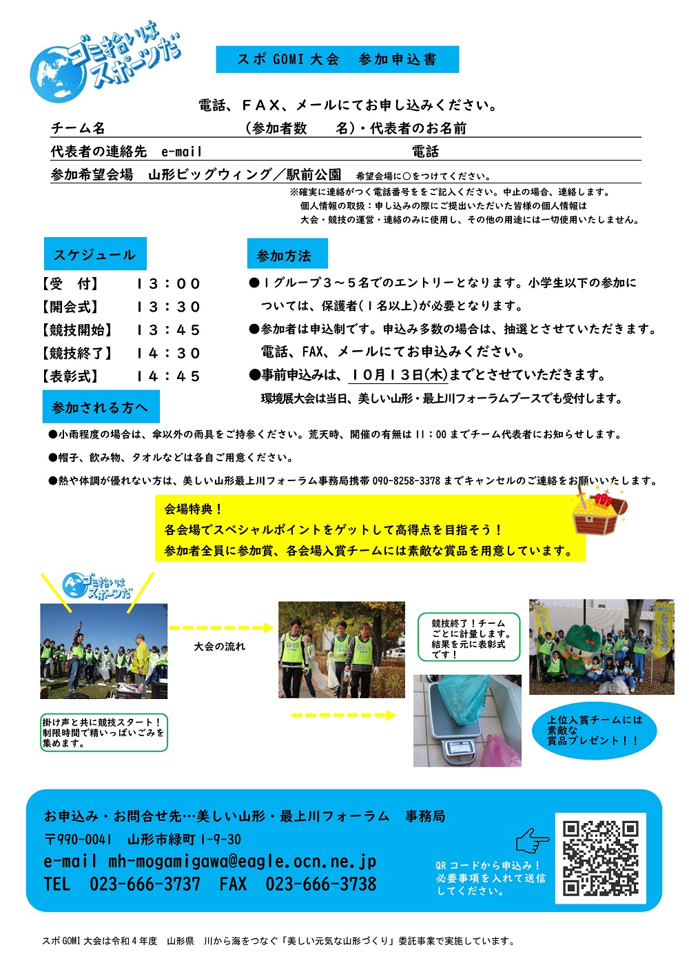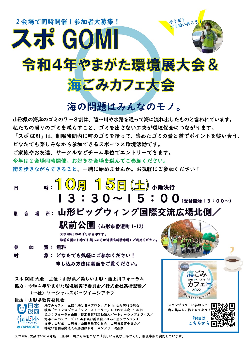 10月15日、やまがた環境展が行われる山形ビッグウィングと、通勤や通学、飲食等を楽しむ山形駅前近辺をエリアとしてスポGOMI2大会を同時開催します。