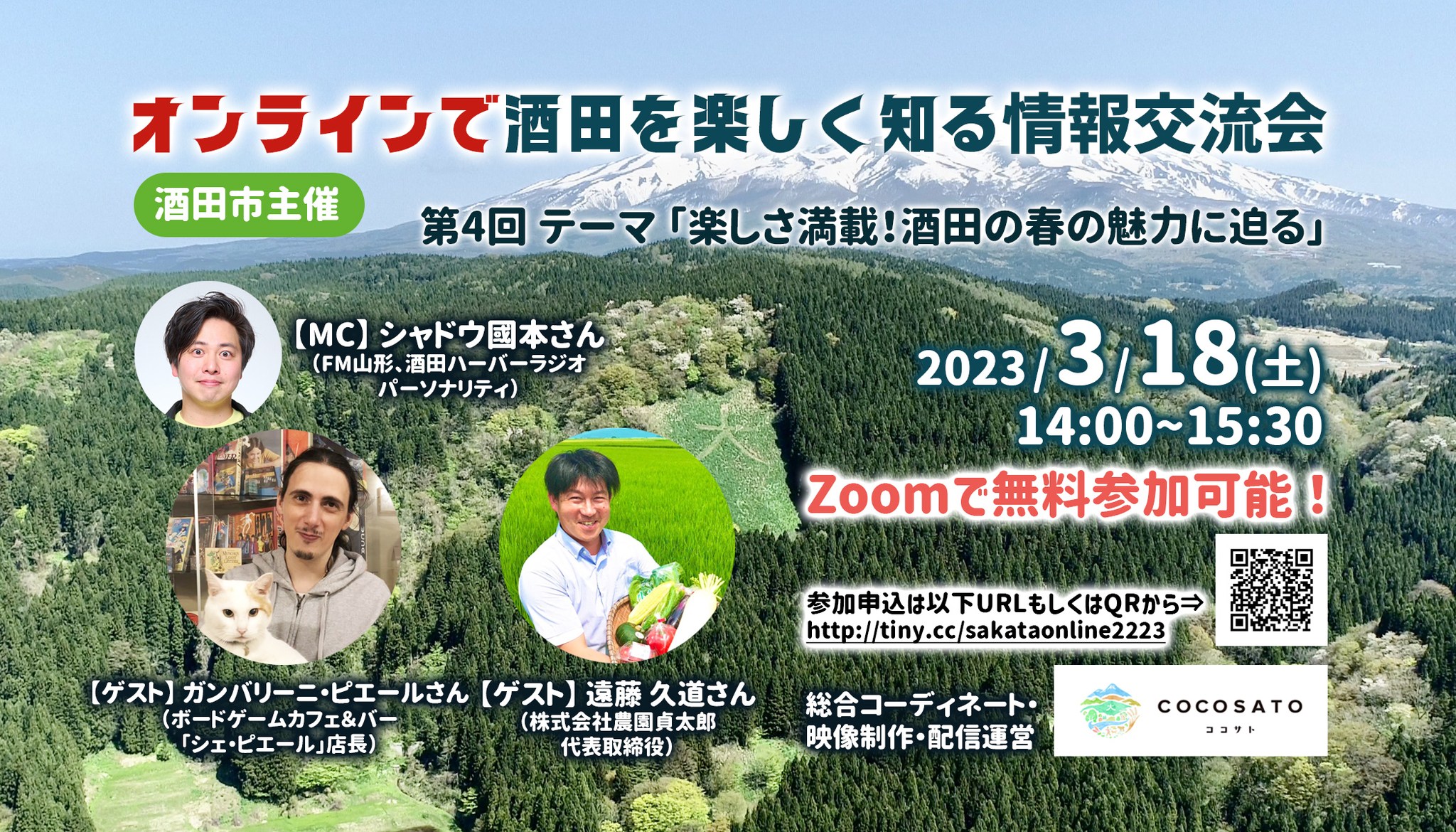 Zoomでのオンライン開催で参加は無料です。地方での暮らしや、庄内や酒田に興味のある方、地方への移住について少しでも考えている方、大歓迎です!