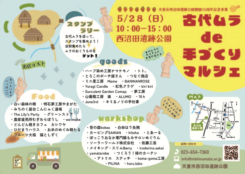 西沼田遺跡公園が2008年5月の開園から、今年で15年周年記念のマルシェを開催します!