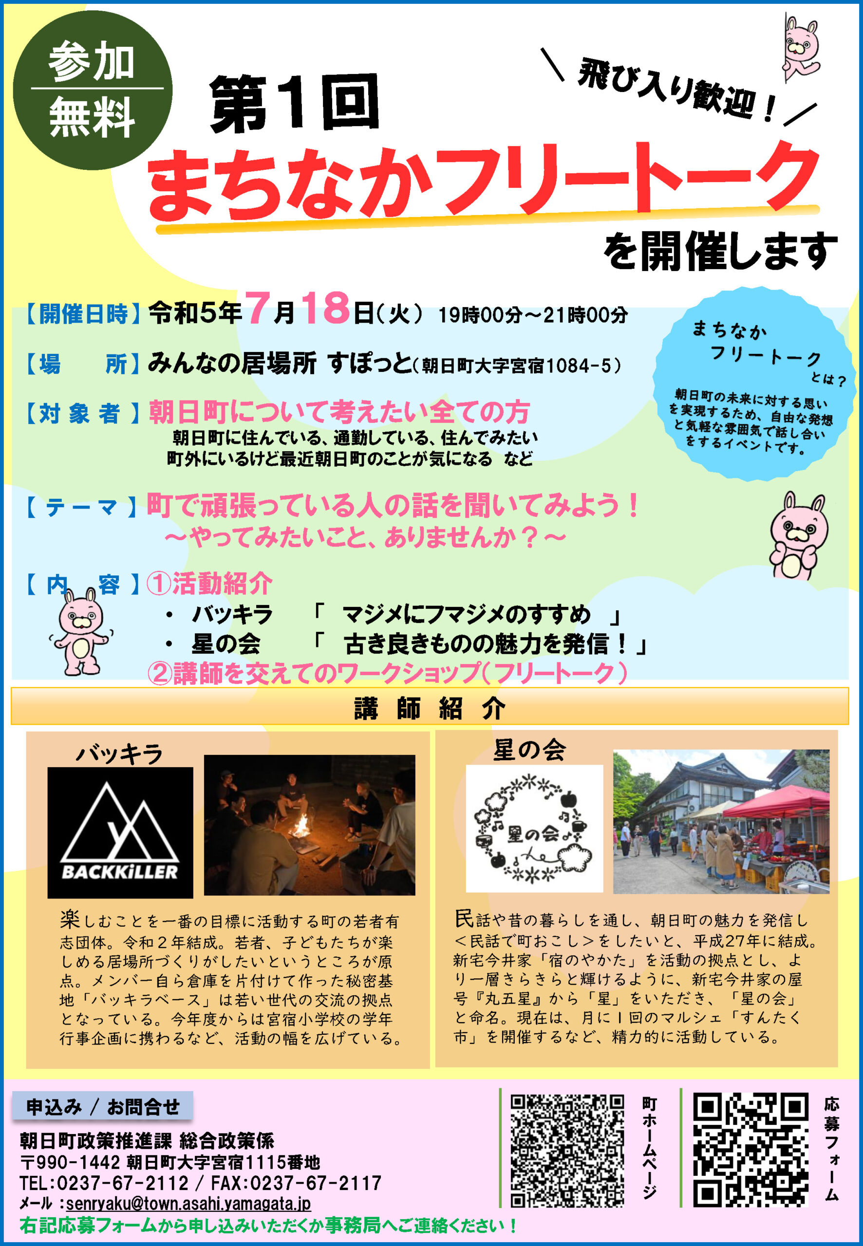 添付ファイル | 第1回まちなかフリートーク チラシ |