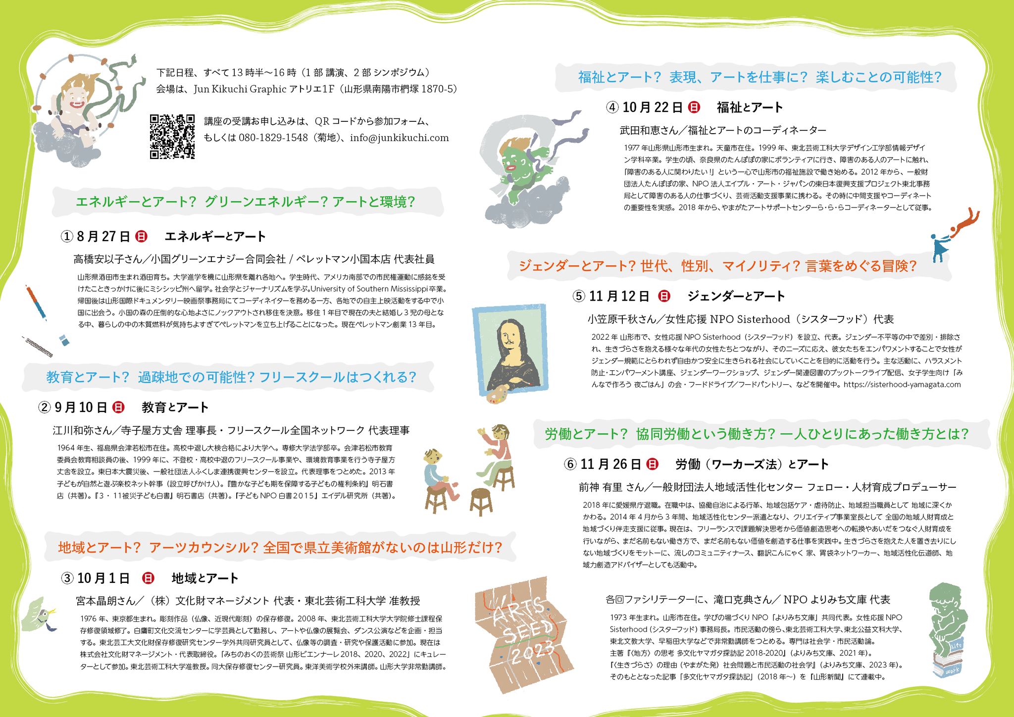 問合せ、お申し込みは、QRコード(https://forms.gle/f9VTiaVnU8eW8tFG9)から参加フォーム、もしくは080-1829-1548(菊地)、メールアドレスinfo@junkikuchi.comまでご連絡ください。