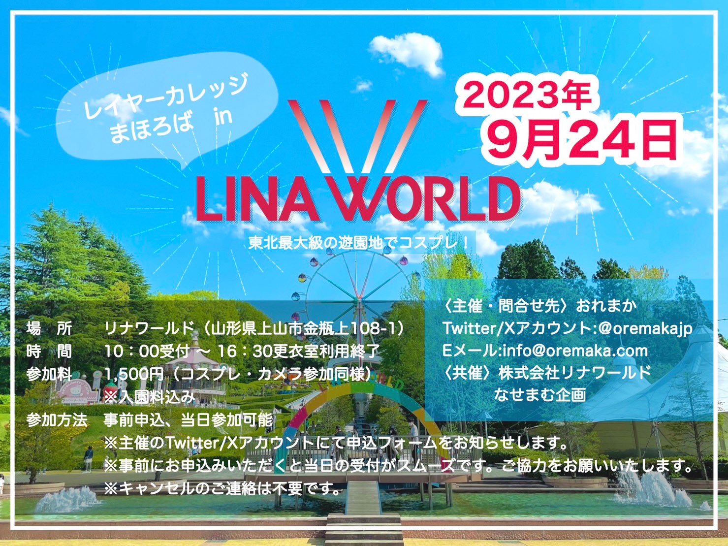 連絡先 | 主催:おれまか @oremakajp メール<info@oremaka.com> 共催:株式会社リナワールド なせまむ企画 |