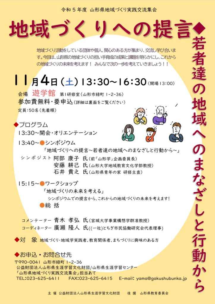 連絡先 | 山形県生涯学習センター Tel:023(625)6411 Fax:023(625)6415 メール:yama@gakushubunka.jp |