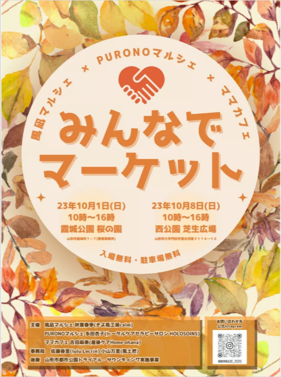 連絡先 | みんなでマーケット Instagram(@minnade_2023) https://www.instagram.com/minnade_2023/ |