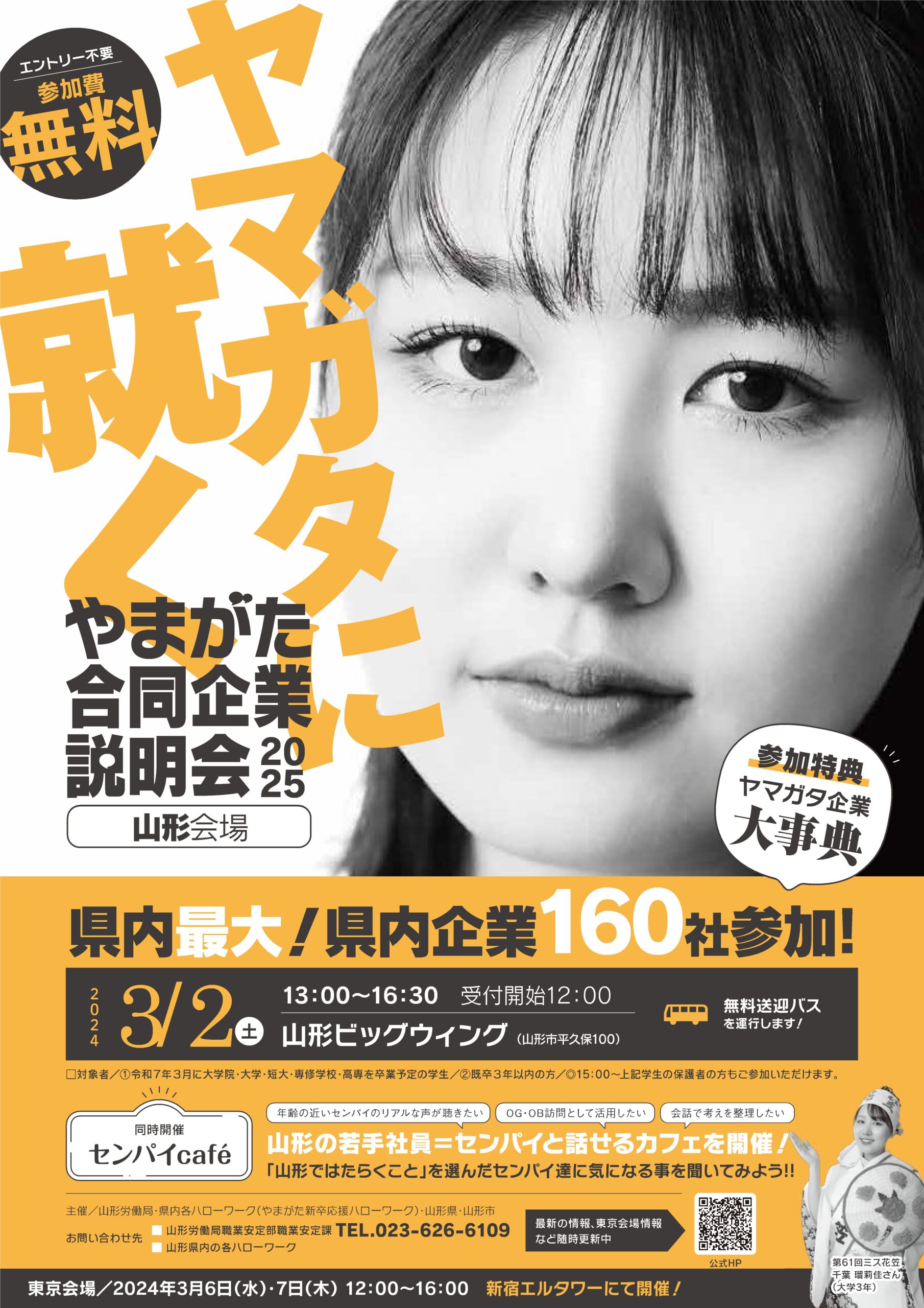まずはこの「やまがた合同企業説明会」から就活をはじめてみませんか。