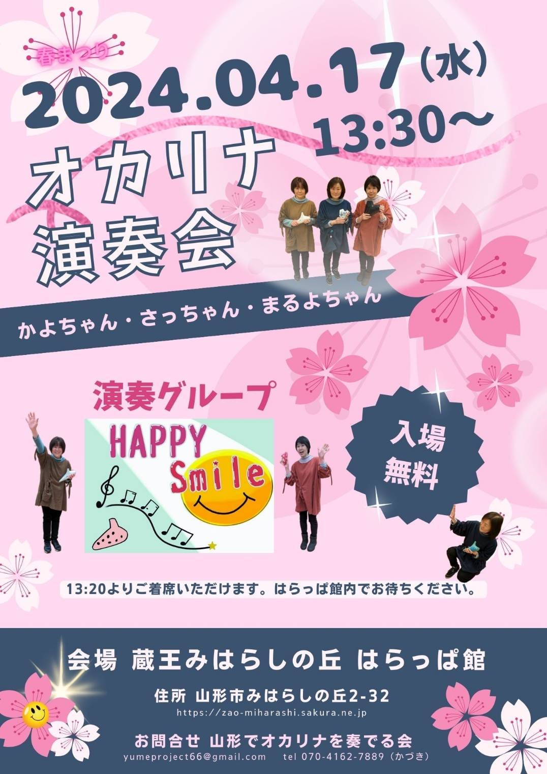 連絡先 | 山形でオカリナを奏でる会 TEL: 070-4162-7889 mail :yumeproject66@gmail.com |
