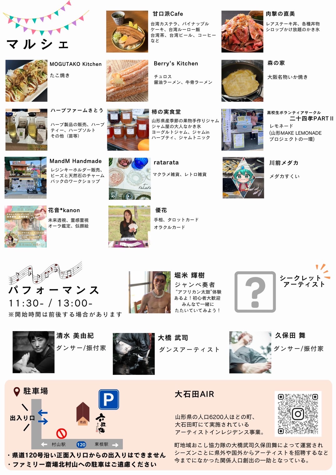 ▶6月23日(日)は東根六歌仙で行われる、パフォーマンスが観れるマルシェ「ぱふぉマルシェ」第三弾開催です。豪華シークレットアーティストもお楽しみに!