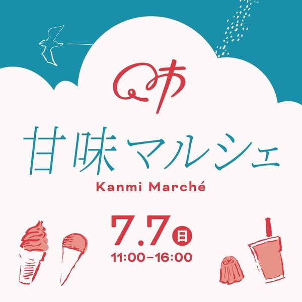 7月7日[日]11:00〜 やまがたクリエイティブシティセンターQ1の前庭、1階を会場に「Q市 甘味マルシェ」を開催いたします。かき氷やジェラート、クラフトコーラにスムージーなど、山形の暑い夏をQ1でお楽しみください!みなさまのご来場お待ちしております。
